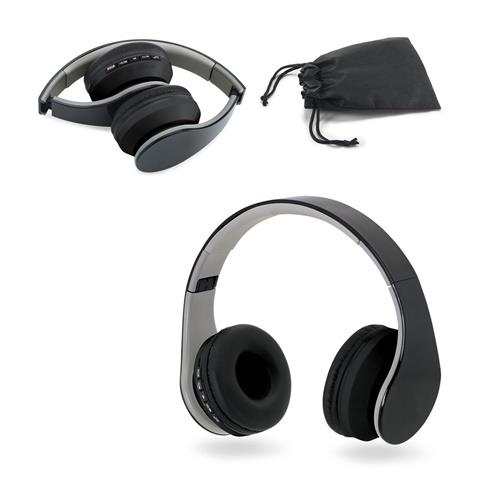 Składane słuchawki wykonane z ABS. Transmisja danych bluetooth i czytnik kart typu TF. Czas pracy baterii do 4 godzin.Funkcja odbierania połączeń, regulacji głośności, łączenia się z listą odtwarzania urządzenia mobilnego oraz radio. Dołączony kabel USB/micro-USB. Dostarczane w pudełku prezentowym (etui z materiału non-woven dołączone). Złożone: 120 x 180 x 80 mm | Etui: 200 x 250 mm | Pudełko: 127 x 171 x 90 mm